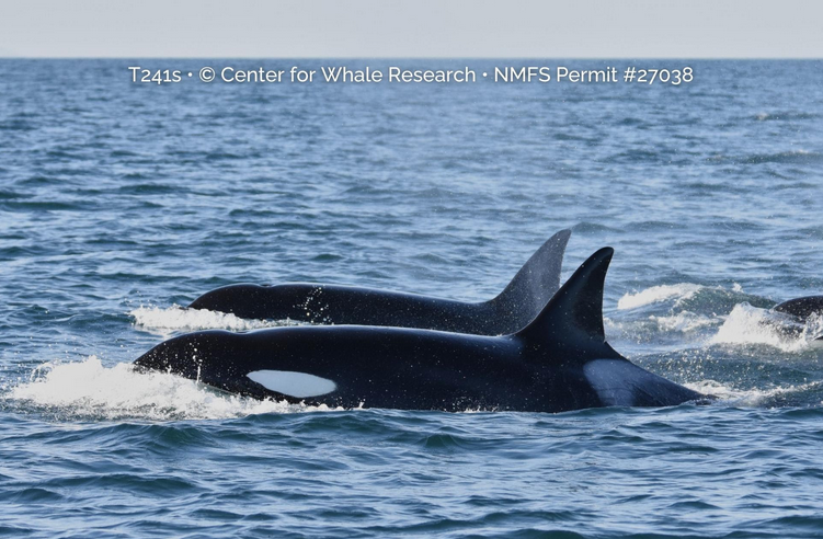 The tight group of five whales was traveling quickly east, making 6.5 knots against a moderate ebb current and outflow-driven surface chop. After a short dive, the whales appeared abeam Mike 1, and the team quickly recognized the matriarch as T241, a very rare visitor to the Salish Sea, along with her kin. The T241s are a part of the outer-coastal subset of Bigg’s killer whales that occur most often along or near the continental shelf of the Eastern North Pacific, first posited by researchers in the 1990s and later described by our colleagues at the Canadian Department of Fisheries and Oceans in 2013 (Ford et al. 2013). Criteria for the placement of the given