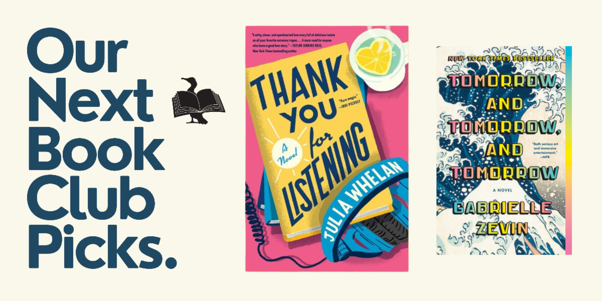 So far, the club has read Emily Henry’s newest novel and Atmosphere by Taylor Jenkins Reid. The tone is a mix of commercial literary fiction and romantic comedy—books that are smart, emotionally resonant, and fun to talk about. The group, which has been mostly made up of thoughtful, hilarious women (and one very lucky man), meets monthly inside cozy Darvill’s, after store hours, surrounded by books.