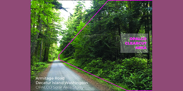 In 2025 OPALCO turned its attention to a proposed expansion of the existing solar array on Decatur that wasn’t in the original plan. For years, OPALCO focused on a larger array at Bailer Hill on San Juan Island. When that proposal stalled under a rigorous, multi-year review, attention shifted back to Decatur and a forested parcel near the existing substation.