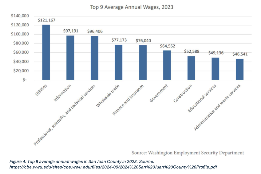 It is no surprise San Juan County leads Washington in income inequality. SJC per capita income is the second highest in WA, but 39% of the population does not earn enough “to afford basic household needs” There is substantial wealth here generating significant investment/property income, but it does not translate into wage growth that keeps pace with rising costs of living for most working families.