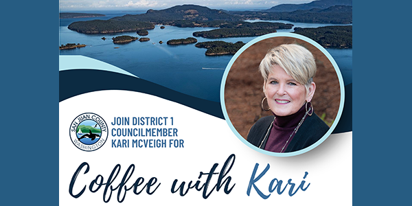 County Council Chair and District 1 representative Kari McVeigh is hosting ‘Coffee With Kari’ – an opportunity to ask questions, hear the latest County news, and chat about what matters to locals. McVeigh will be hosting an open-house style meeting on Orcas Island on September 20.