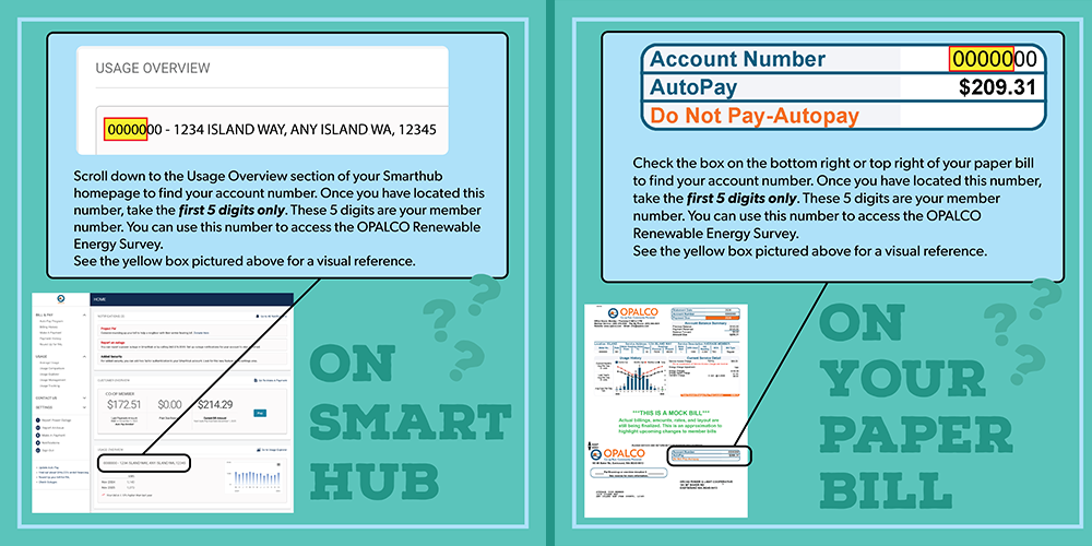 can be found by locating the first five digits of their OPALCO account number. Visual guides have been shared on