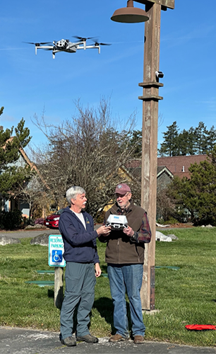 Identifying and tracking slicks are much easier from the air than from shore or a boat. David Byers of Ecology showed how useful Unmanned Aerial Vehicles (UAVs, drones) have become in oil spill remediation via a live demonstration. At the time of his presentation, it happened that Ecology staff were searching for a reported slick in the Columbia River near Vancouver, WA, flying a drone identical to one that David brought to Lopez. The software and comms built into this drone and its ground station enabled him to live-stream the search, and to ask the drone operators to show off some of its capabilities. After this extremely informative demonstration, David took the group to the parking lot and flew the same-model drone over Lopez village, showing off some of its other capabilities and explaining its controls. IOSA has begun to invest in drone technology and will be rolling out its local Drone Response Program by the end of 2026.