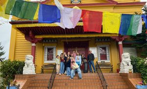 Students practiced an extended meditation in the shadow of the throne of the monastery’s Head Lama. The class continued on to the Seattle Asian Art Museum to see both ancient and contemporary sculptures and images of the Buddha, various Hindu deities, and amazing creations of light and shadow. The day ended with a visit to a synagogue, where the group engaged in a two-hour dialogue with a Rabbinical student encompassing many elements of Jewish practice and the core tenets of Judaism.